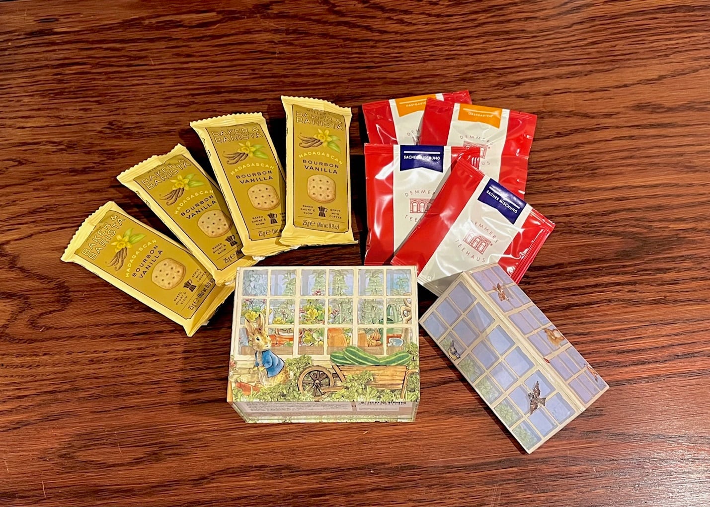 ショートブレッド×4袋、ザッハブレンド×2袋、フルーツガーデン×2袋が入っています!!